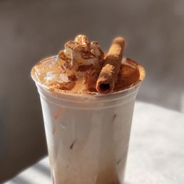 Local coffee shop located in old town Temecula. Pretty popular as there was a line outside, but it moves along. Their most popular specialty drink is the BSC which is brown sugar caramel. I asked if that one or the coffee cake is better, he said coffee cake is great if you like cinnamon and vanilla. I went with that one and my boyfriend got the honey lavender. Nice presentation of drinks and I really enjoyed the coffee cake latte - good amount of cinnamon and a smooth vanilla flavor. I thought the honey lavender was good too though the flavor was a little subtle.